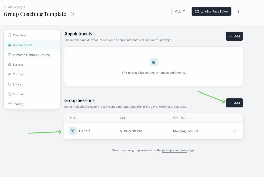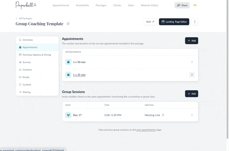 To do that, click into the Appointments section of your package.