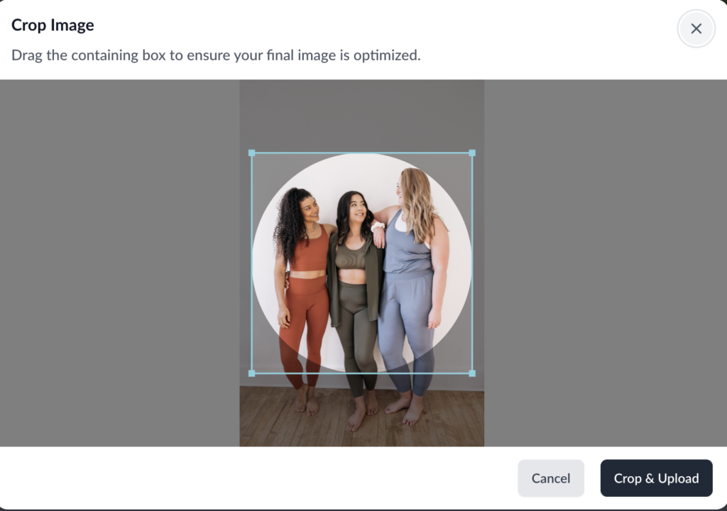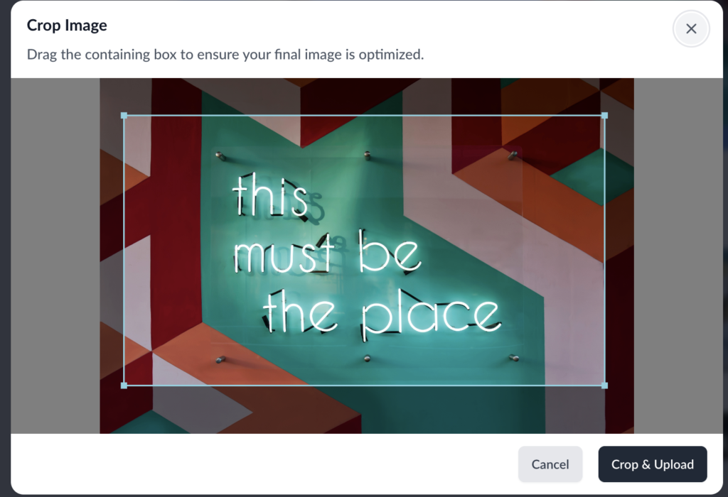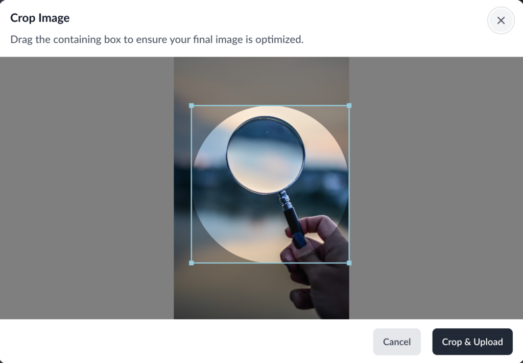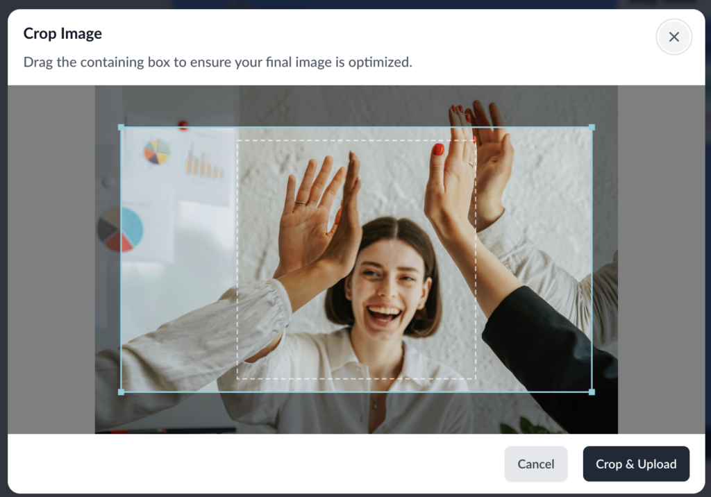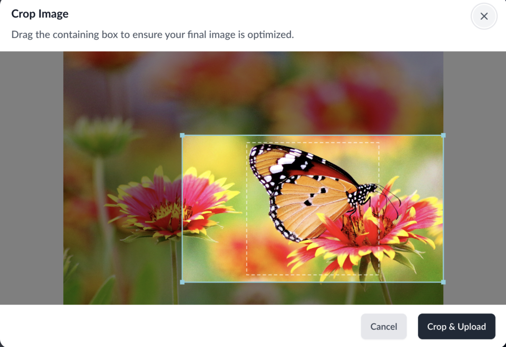 When you upload an image, our resizing tool will pop up. Adjust the lines to resize and refocus your image.