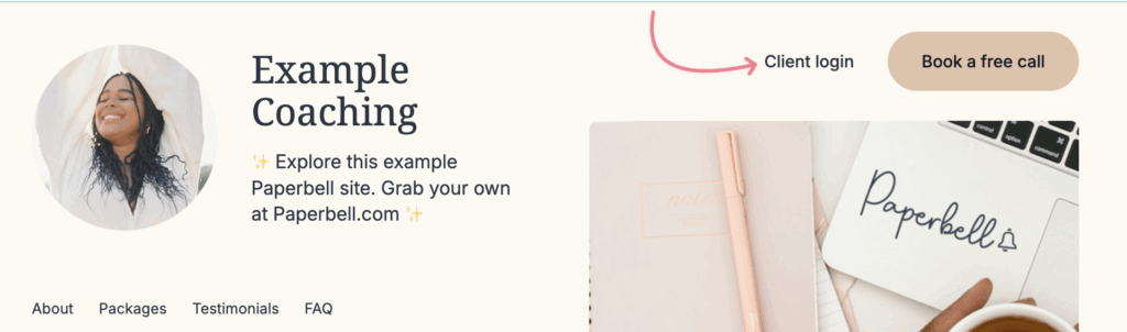 You’ll also see a Client login at the top of your coach’s Paperbell site: