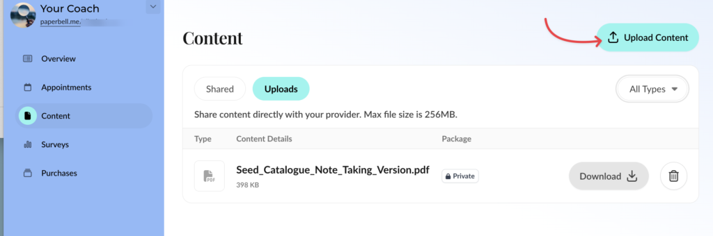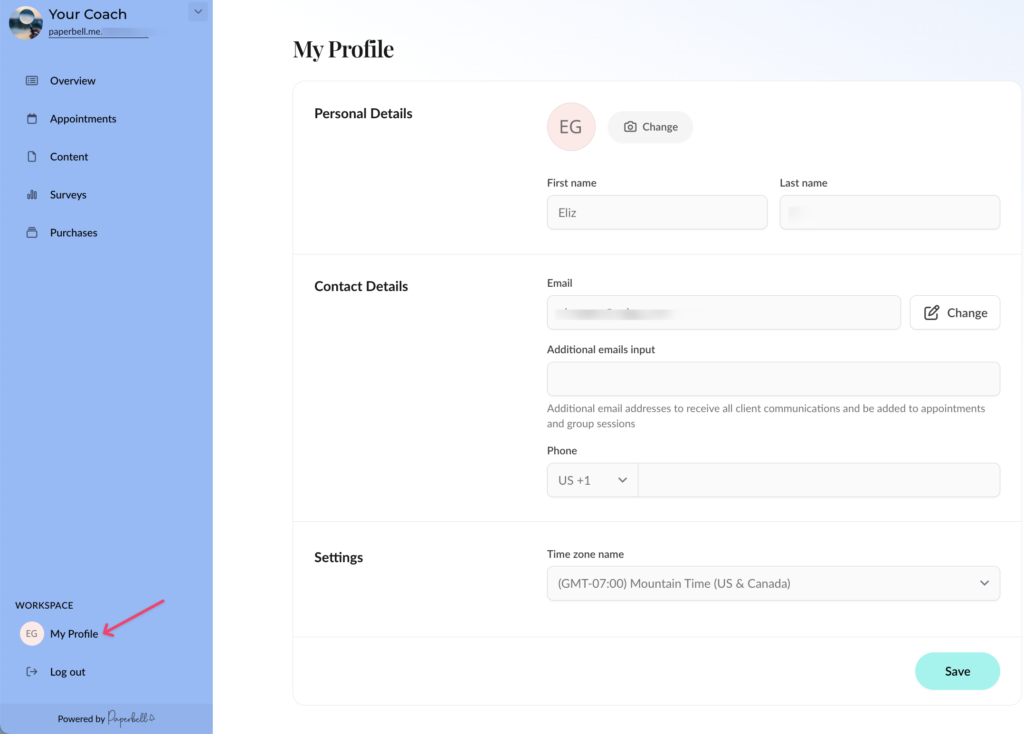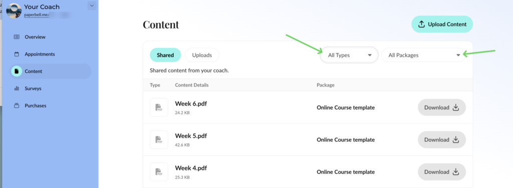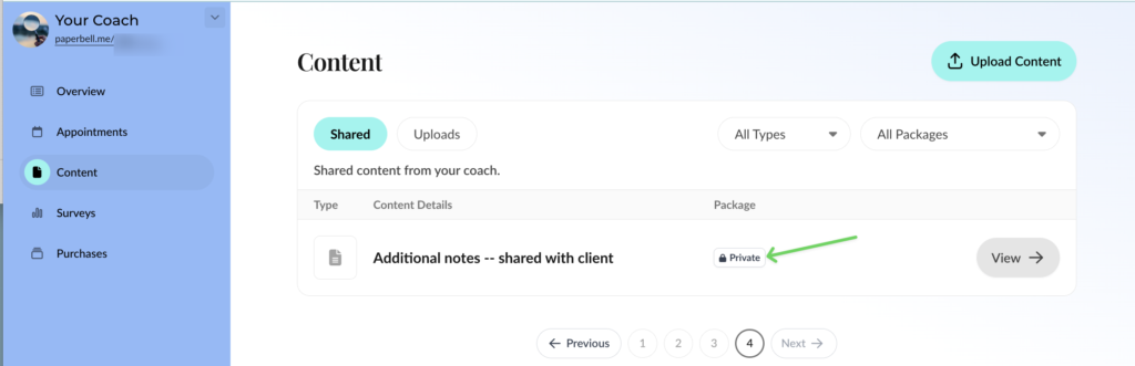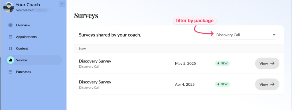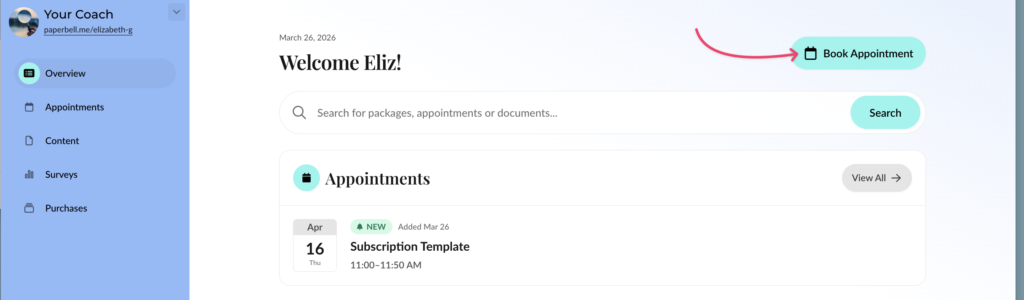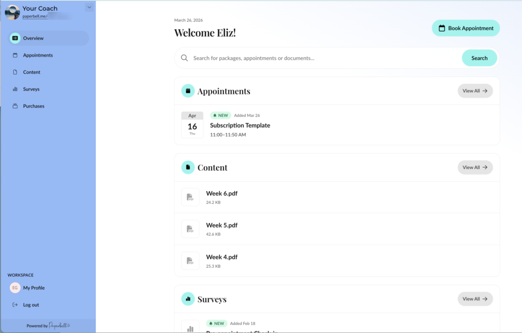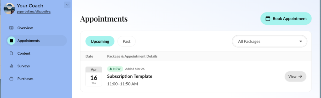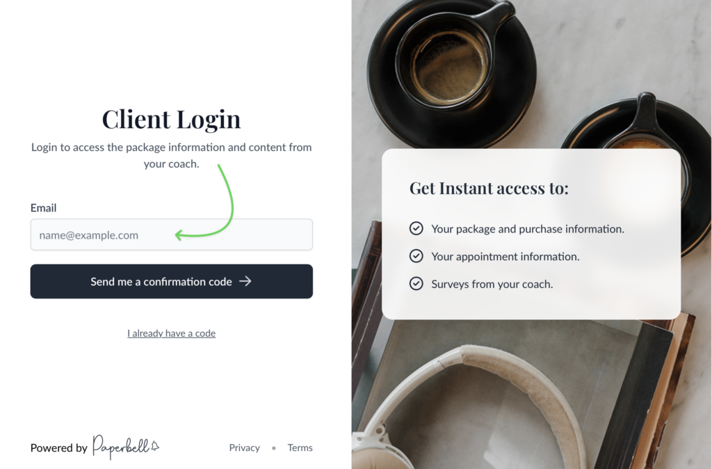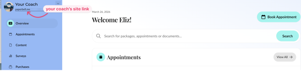 Once you have purchased a package via Paperbell, or your coach has given you a package, you will have access to the Client Portal.